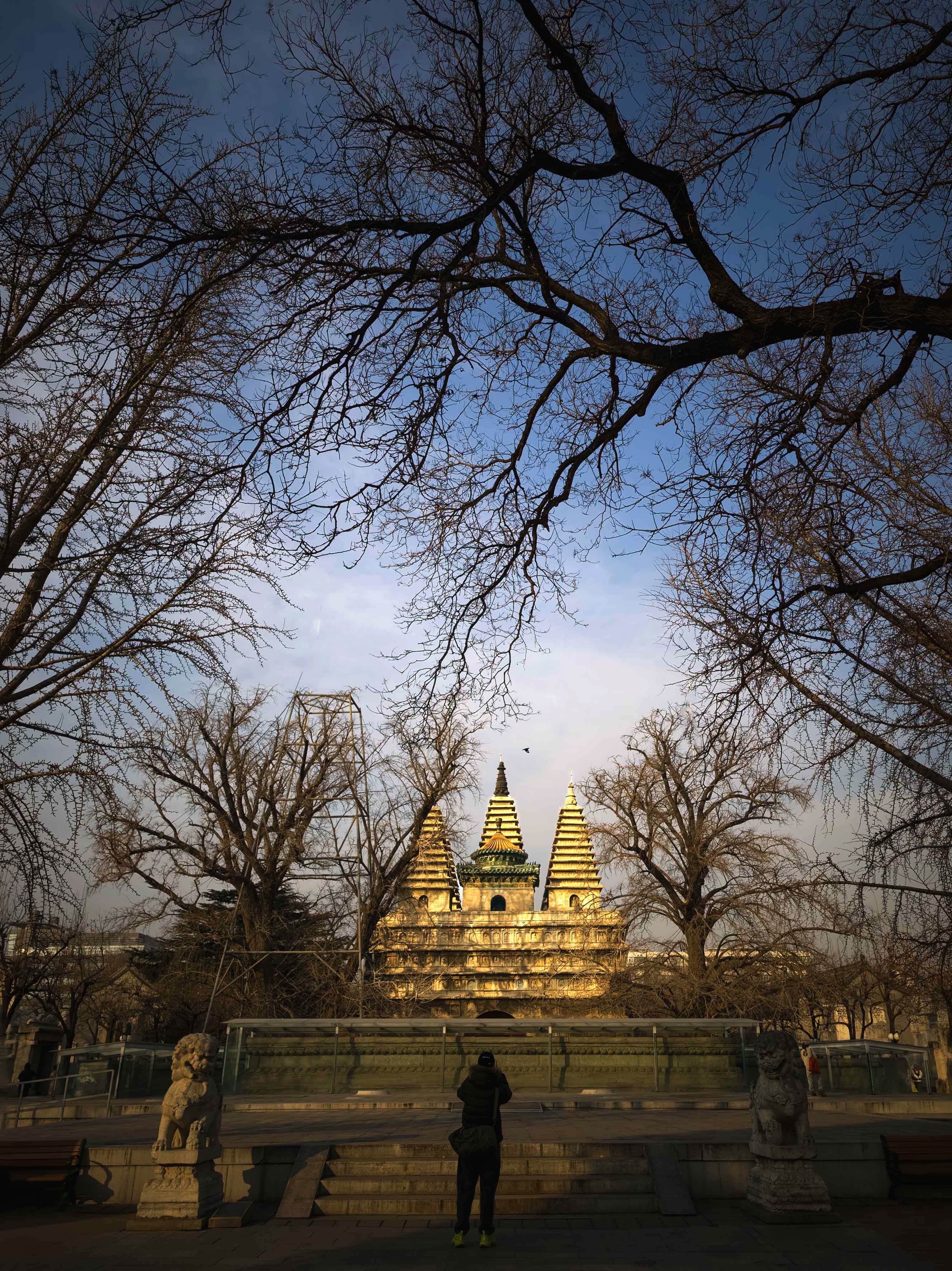 北京的寒冬来得凛冽,那日午后,风卷着干冷的空气掠过街巷,气温已降至冰点。我与摄友裹紧厚袄,缠上围巾,背了相机往五塔寺路去。这清寒的天气,倒与去探访一座历经沧桑的古塔心境相合。