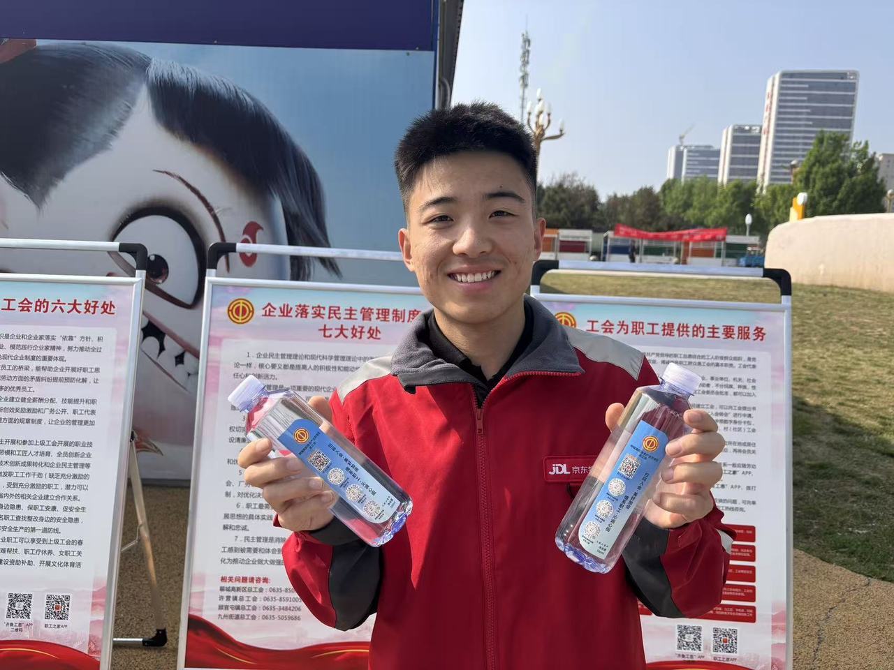 “师傅,天热,喝口水。扫一下矿泉水瓶子上的二维码就可以加入工会了!加入工会好处非常多,你仔细看看!”日前,在山东聊城高新区月季里商圈工会驿站前,一瓶瓶蓝白相间的工会定制款入会宣传矿泉水递到了环卫工和快递小哥手中。这一瓶看似普通的水,实则是一封来自工会的暖心邀请函。