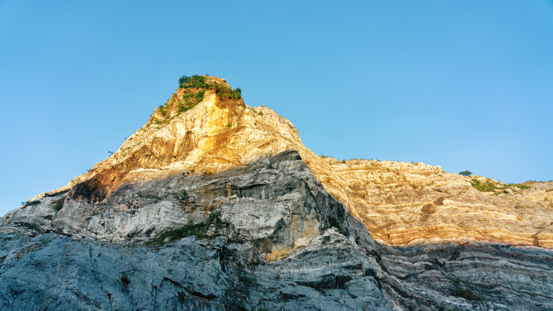 澄澈湛蓝的湖水在阳光映照下呈现“蓝眼泪”奇观,傍晚崖壁折射阳光形成“日照金山”盛景。图源 | 佛山发布