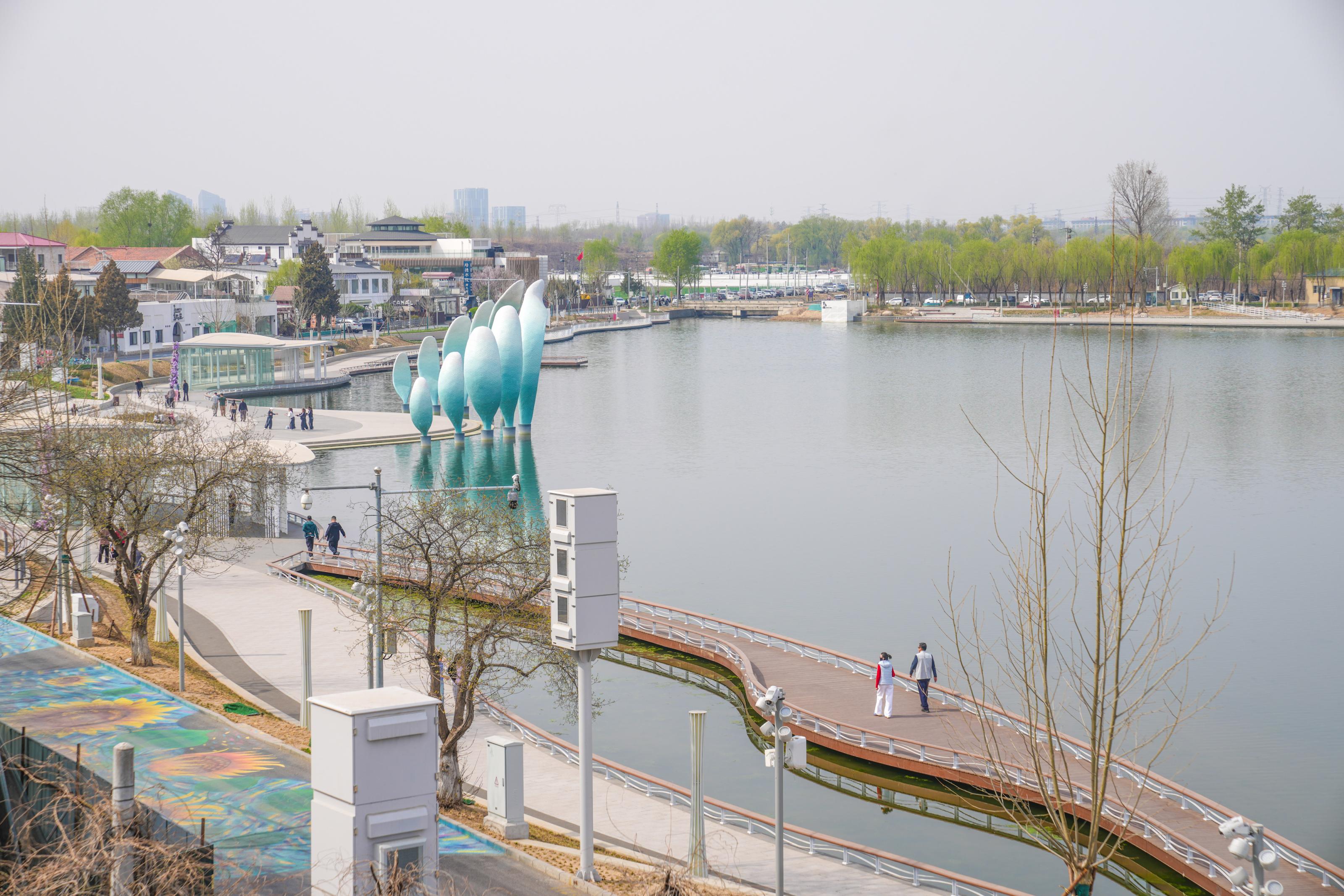 顺义区水务局相关负责人介绍,湖区以流线型的时尚造型语言,清新的配色,丰富的双语标牌以及独特的种植特色,构建高品质国际化的整体氛围。缓坡位置设置的阳光草坪可以坐卧,让人仿佛置身欧洲。