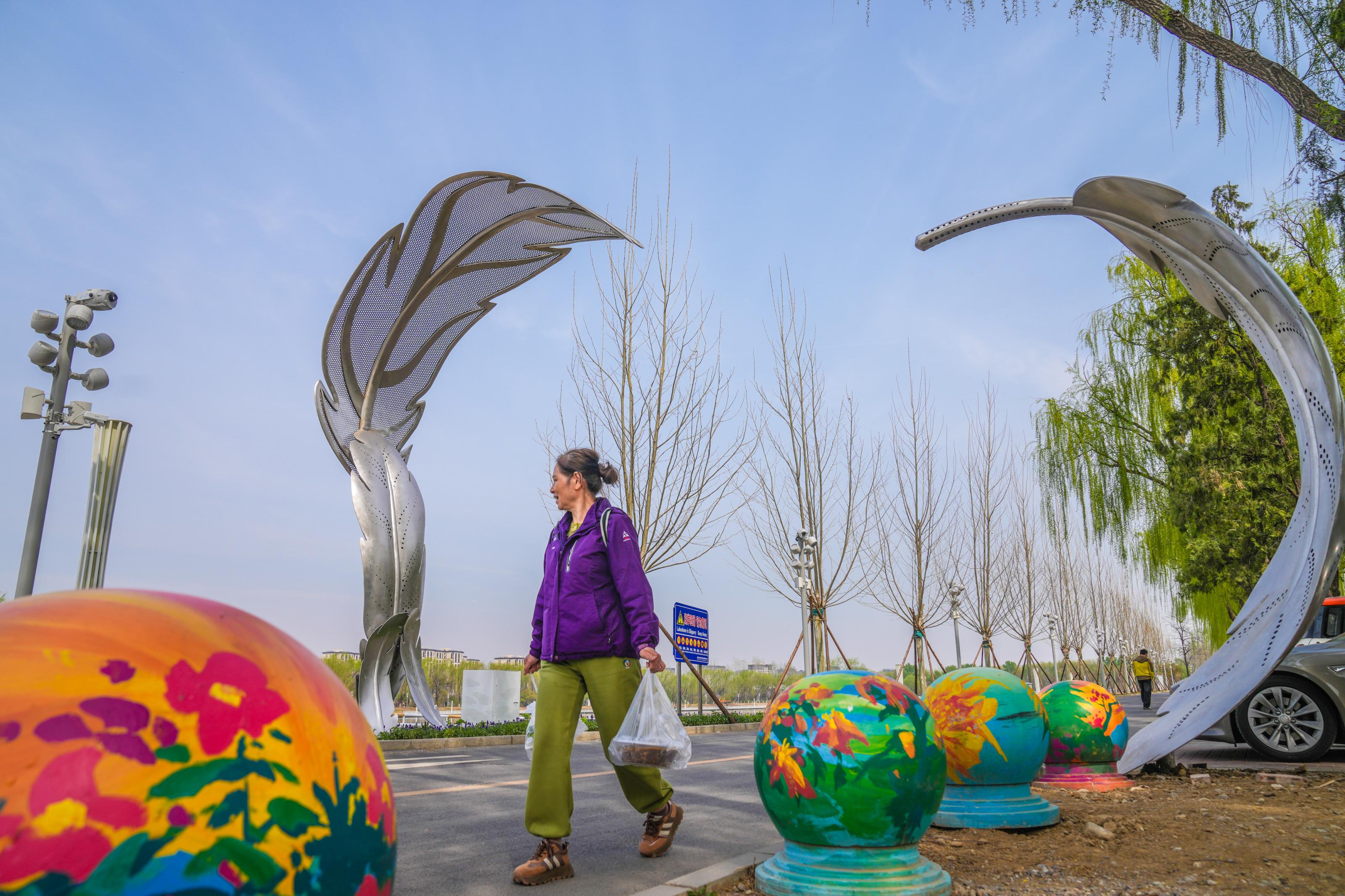 市民漫步于艺术雕塑间