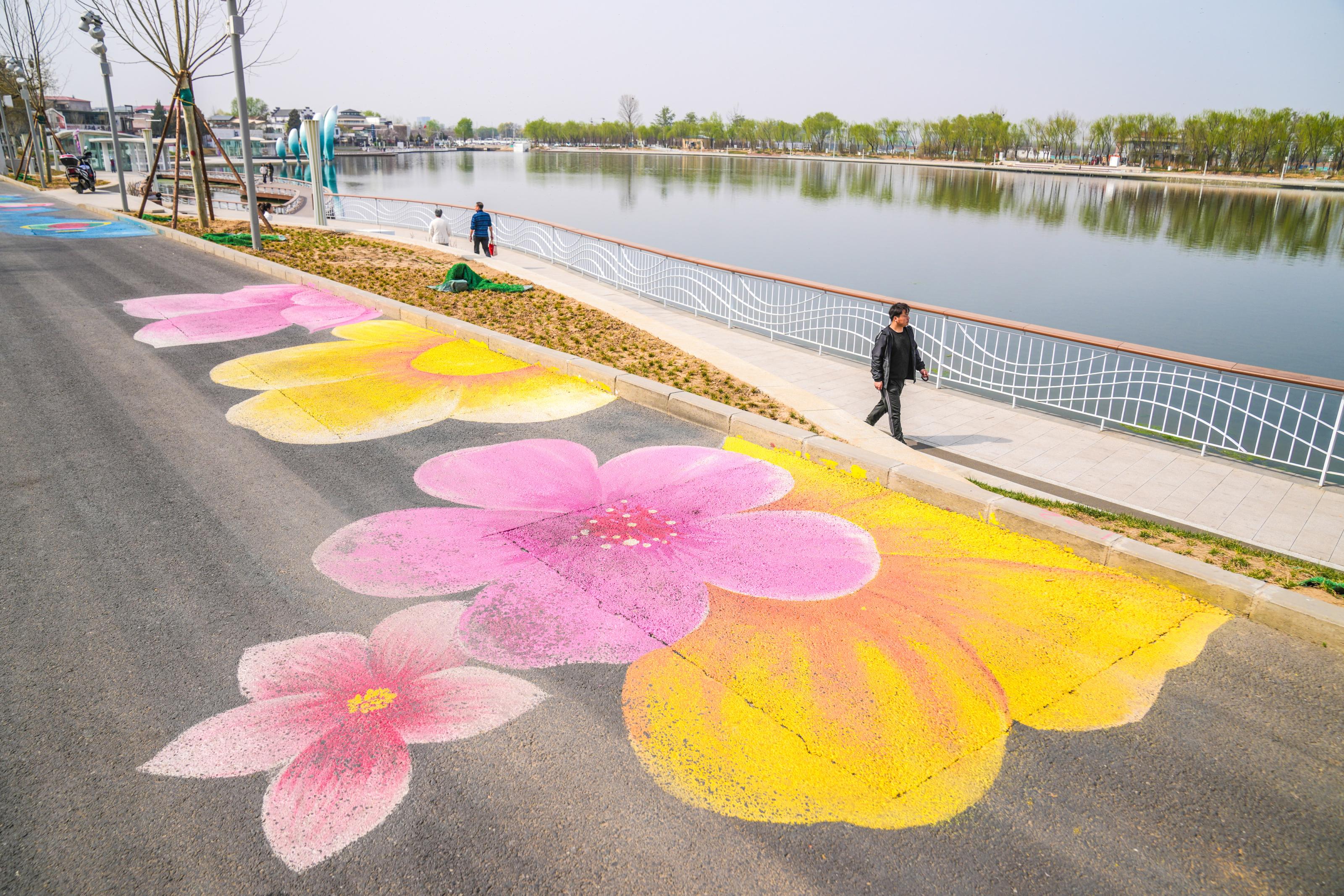 创意地面彩绘为滨水街区添彩