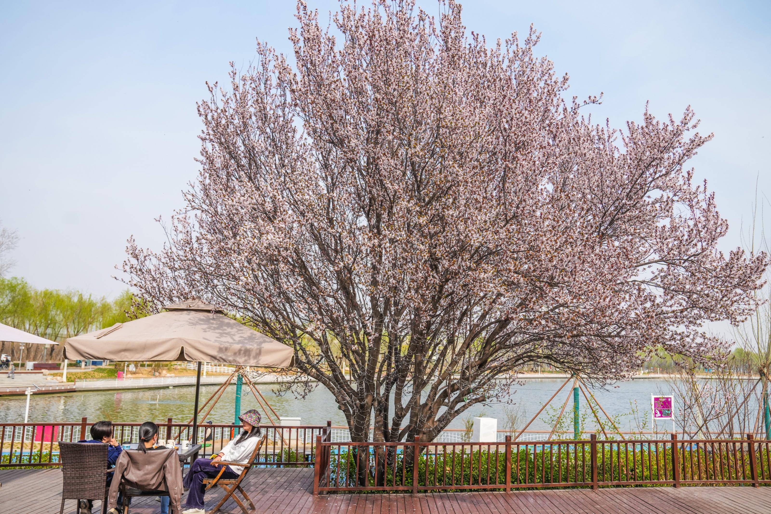 游客围坐休憩,享受湖畔惬意时光